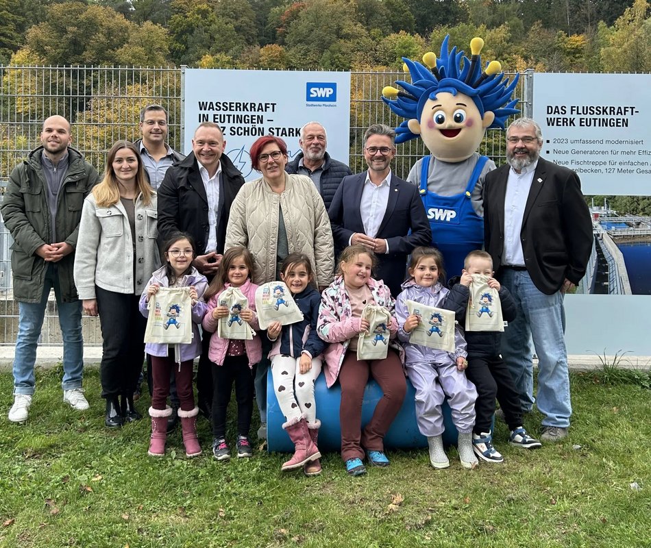 „Als Stadtwerke sehen wir uns in der Verantwortung, die Energieversorgung zukunftsfähig für die Menschen in Pforzheim und kommende Generationen zu gestalten. Die Modernisierung des Flusskraftwerks Eutingen an einem so schönen Fluss wie der Enz verbindet ökologische Zukunft mit technischer Innovationskraft. Die Arbeiten waren technisch anspruchsvoll und erforderten viele Abstimmungen zwischen den beauftragten Firmen und den SWP-Mitarbeitenden“, so Dr. Aik Wirsbinna, Geschäftsführer der SWP. Als Zeichen der Wertschätzung überreichte er dem angrenzenden Kindergarten eine Spende und Malbücher für die Kinder – verbunden mit Dank für die Geduld während der Bauzeit.